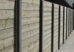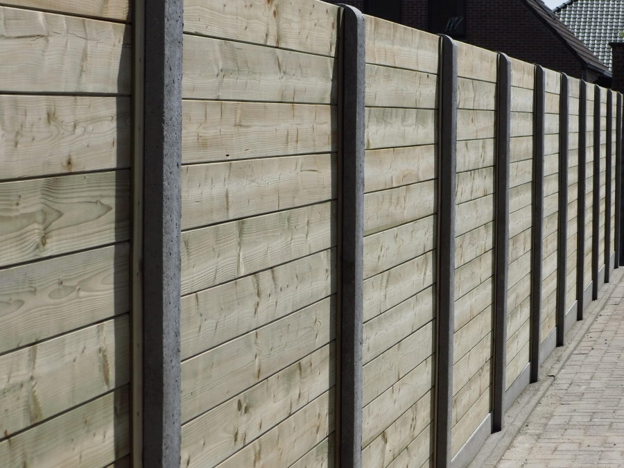 Houten tuinschermen kunnen geplaatst worden in combinatie met (hard)houten gleuf- of vierkantpalen, betonnen palen of palen in metaal of aluminium, al dan niet voorzien van een betonplaat onderaan.